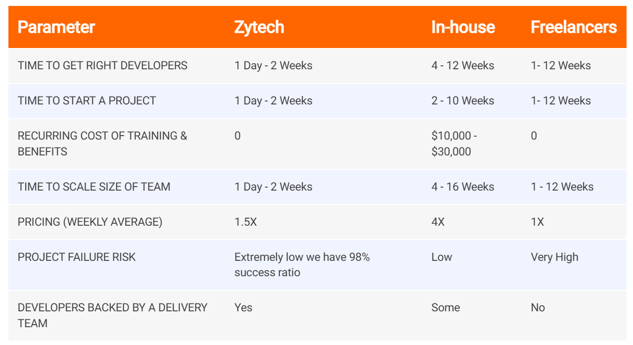 Comparative Analysis of Zytech's Developers, In-house, and Freelancers